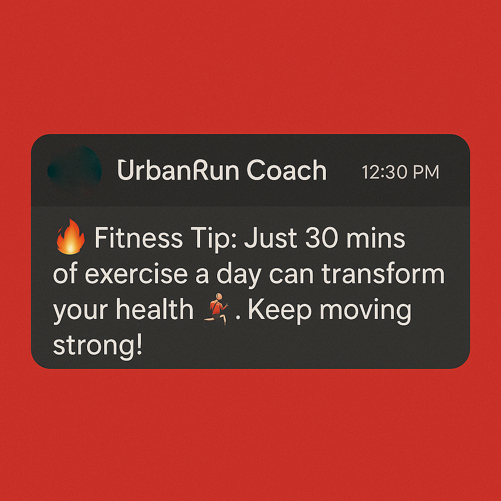 - ๐ฉ Message 2: ๐ฅ Fitness Tip: Just 30 mins of exercise a day can transform your health ๐. Keep moving strong!