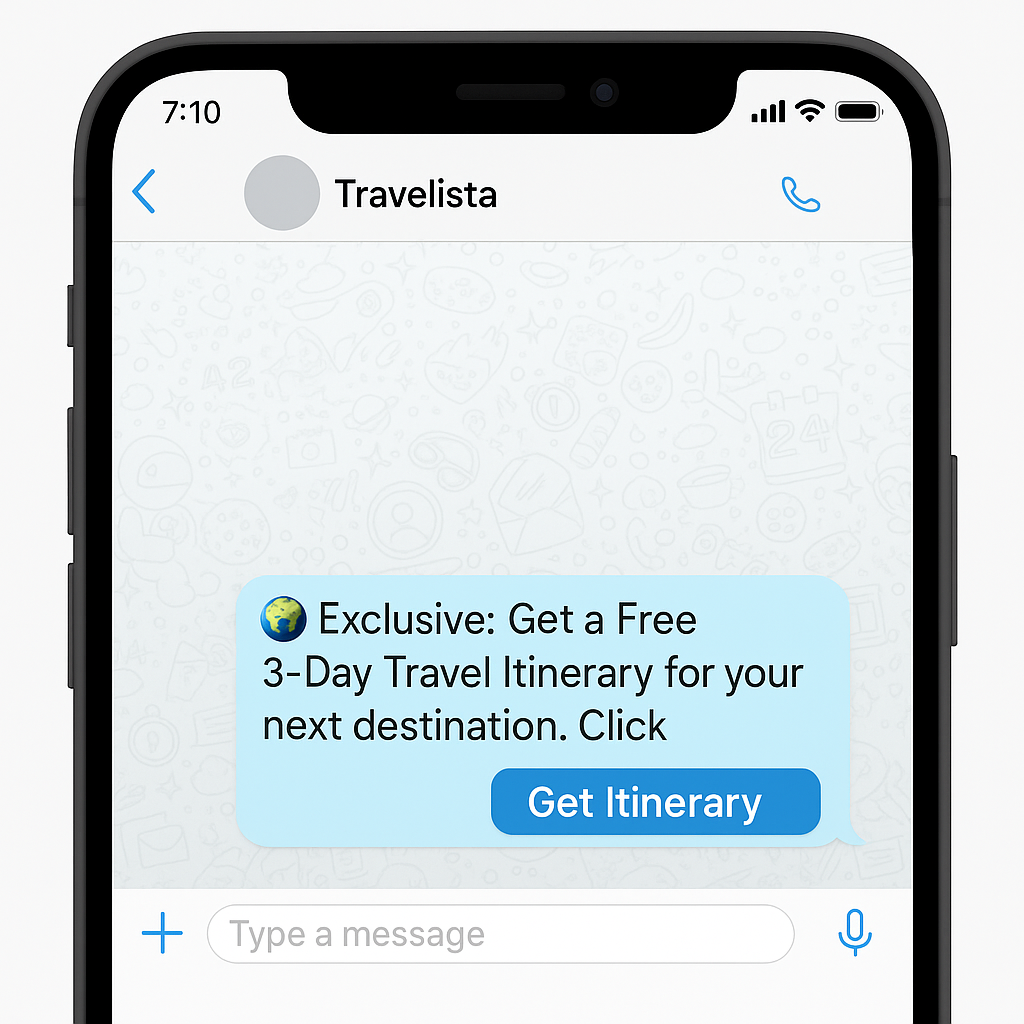 Solution: Designed short, visually appealing WhatsApp messages combining destination insights with exclusive deals.