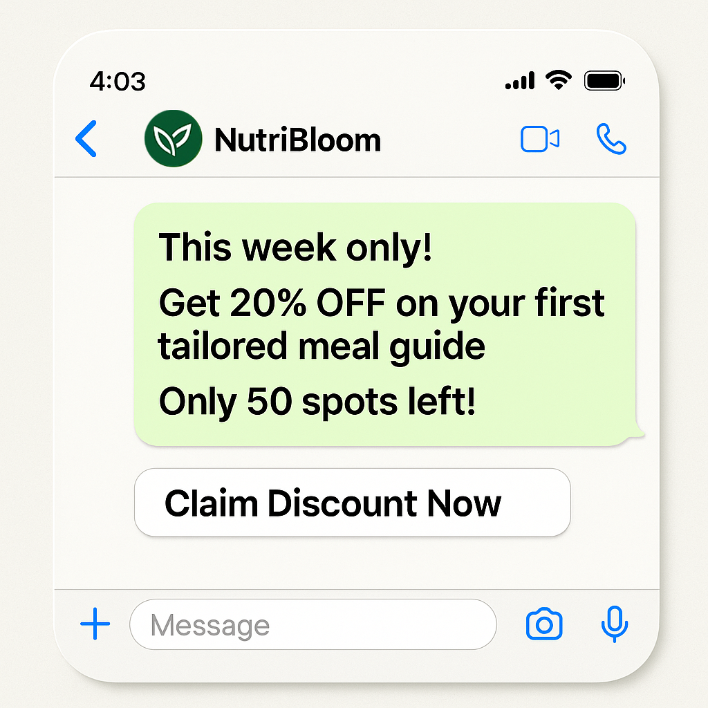๐ “This week only! Get 20% OFF on your first tailored meal guide ๐. Only 50 spots left!”