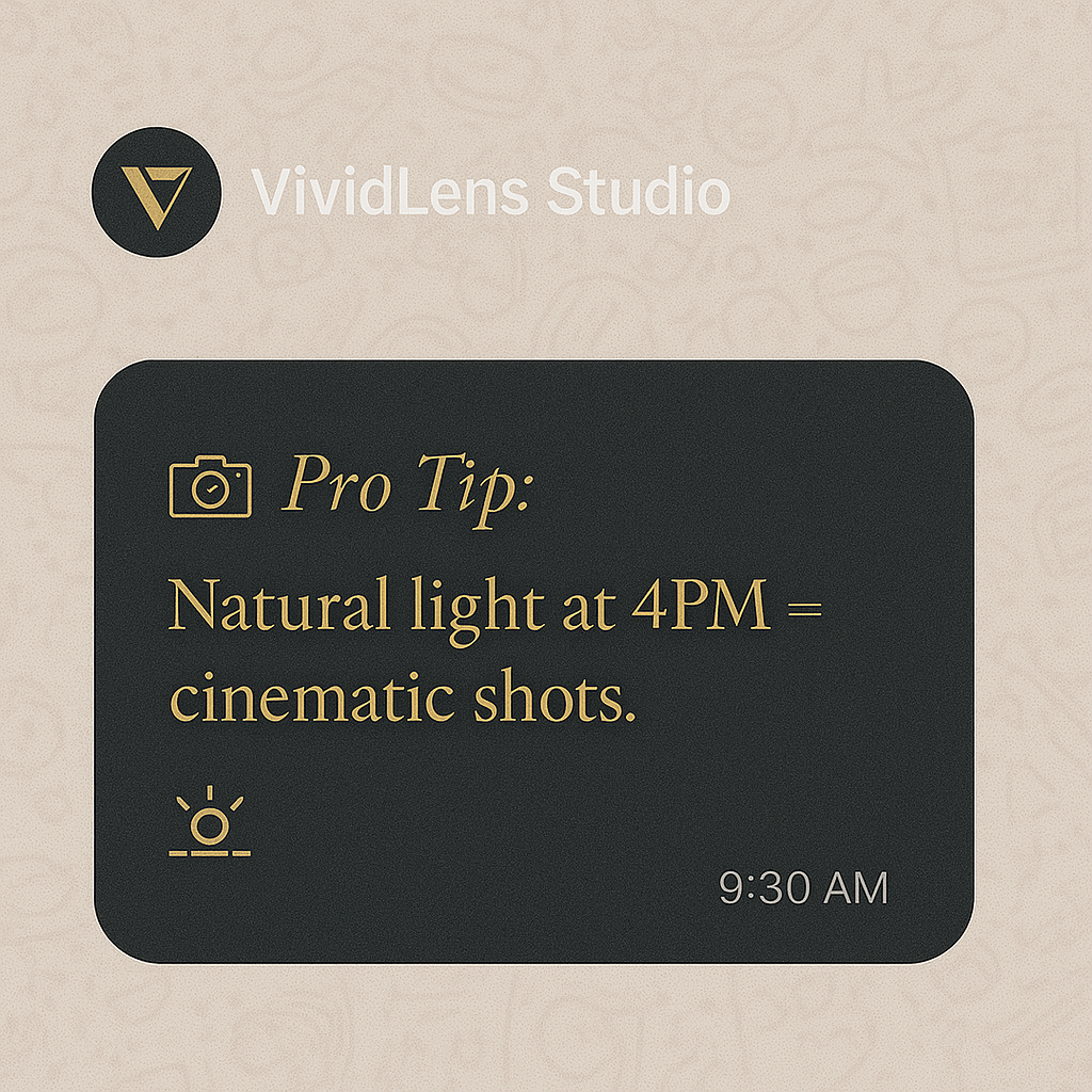 📝 “📸 Pro Tip: Natural light at 4PM = cinematic shots.”
