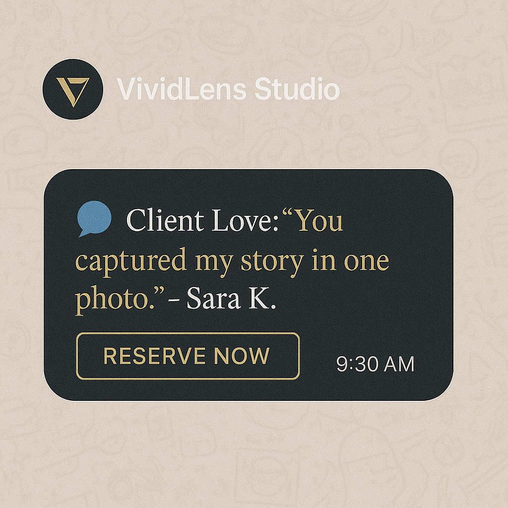 In a highly visual and emotional industry like photography, VividLens Studio needed more than just ads to stay top of mind. They wanted to nurture trust, share value, and invite clients to book sessions effortlessly.
