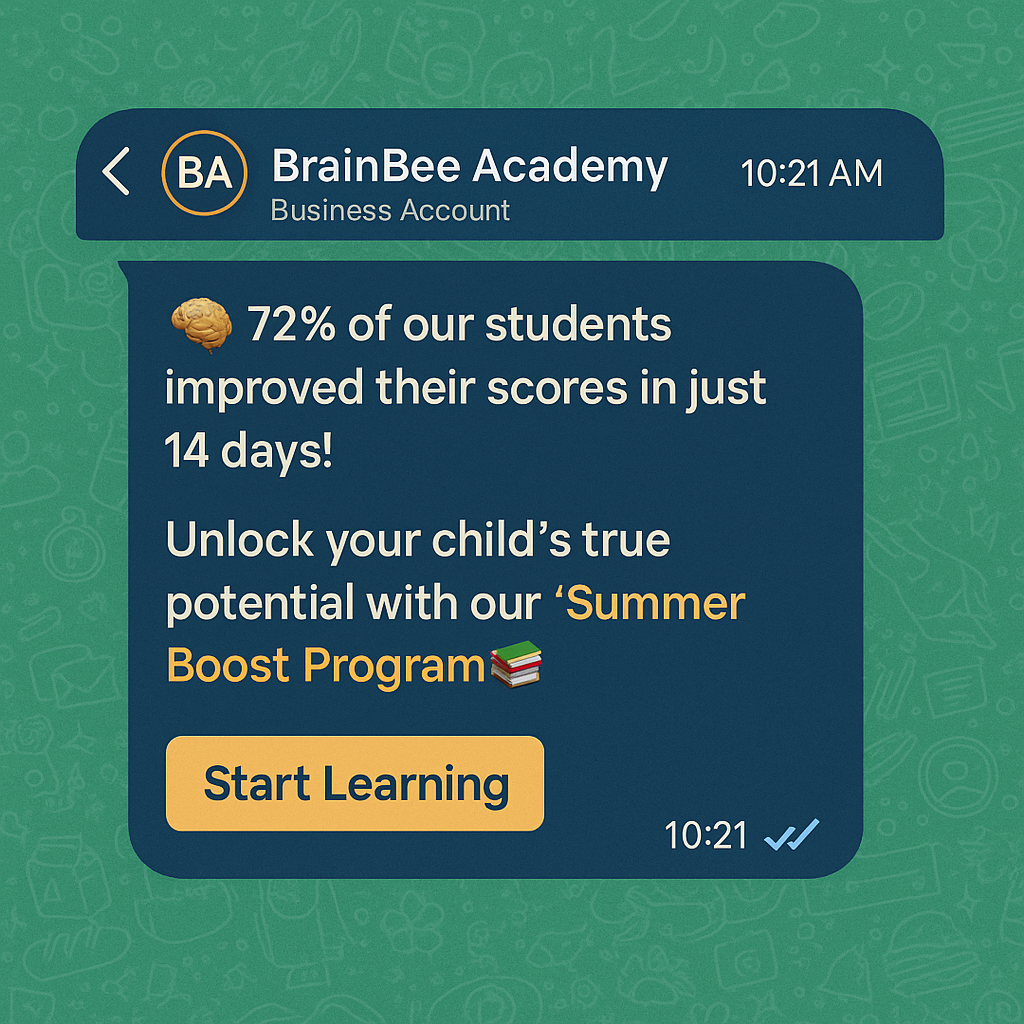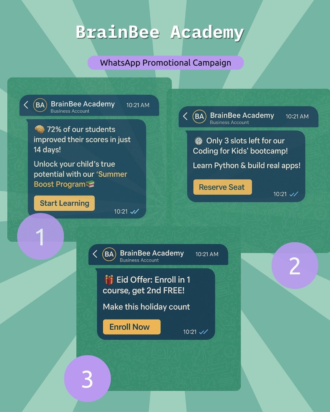 Project Showcase: BrainBee Academy – WhatsApp Promotional Campaign (Seasonal Offer)