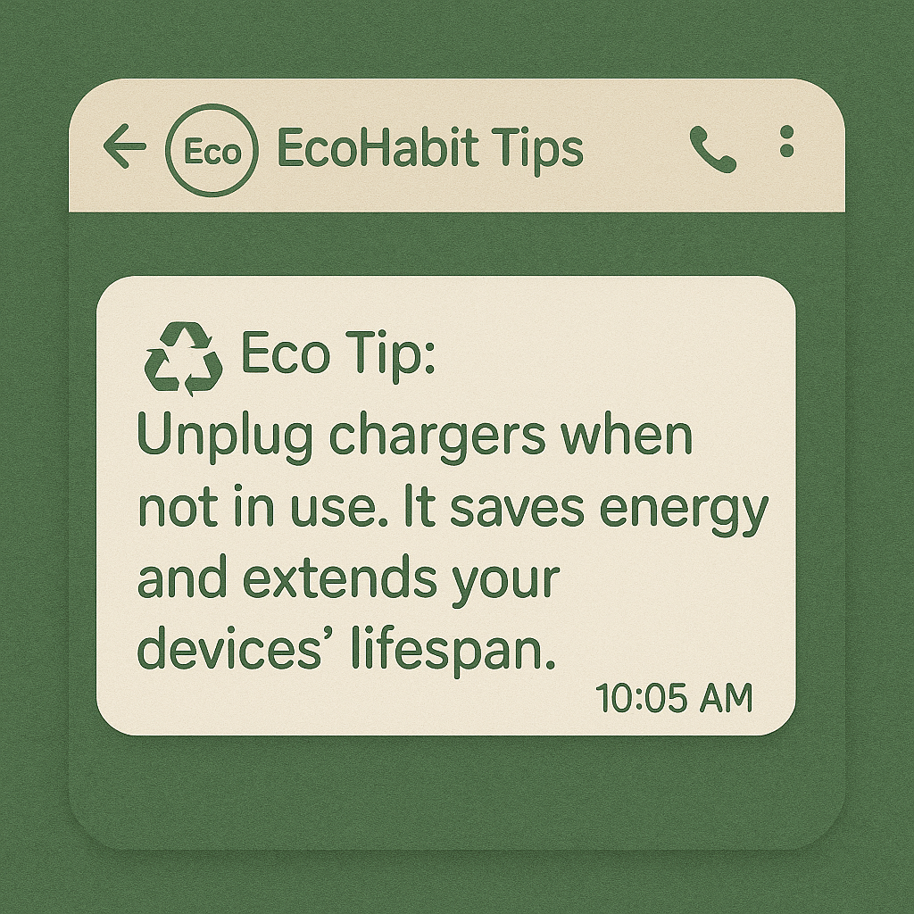 2. 📩 Message 2: ♻️ “Eco Tip: Unplug chargers when not in use. It saves energy and extends your devices’ lifespan.”