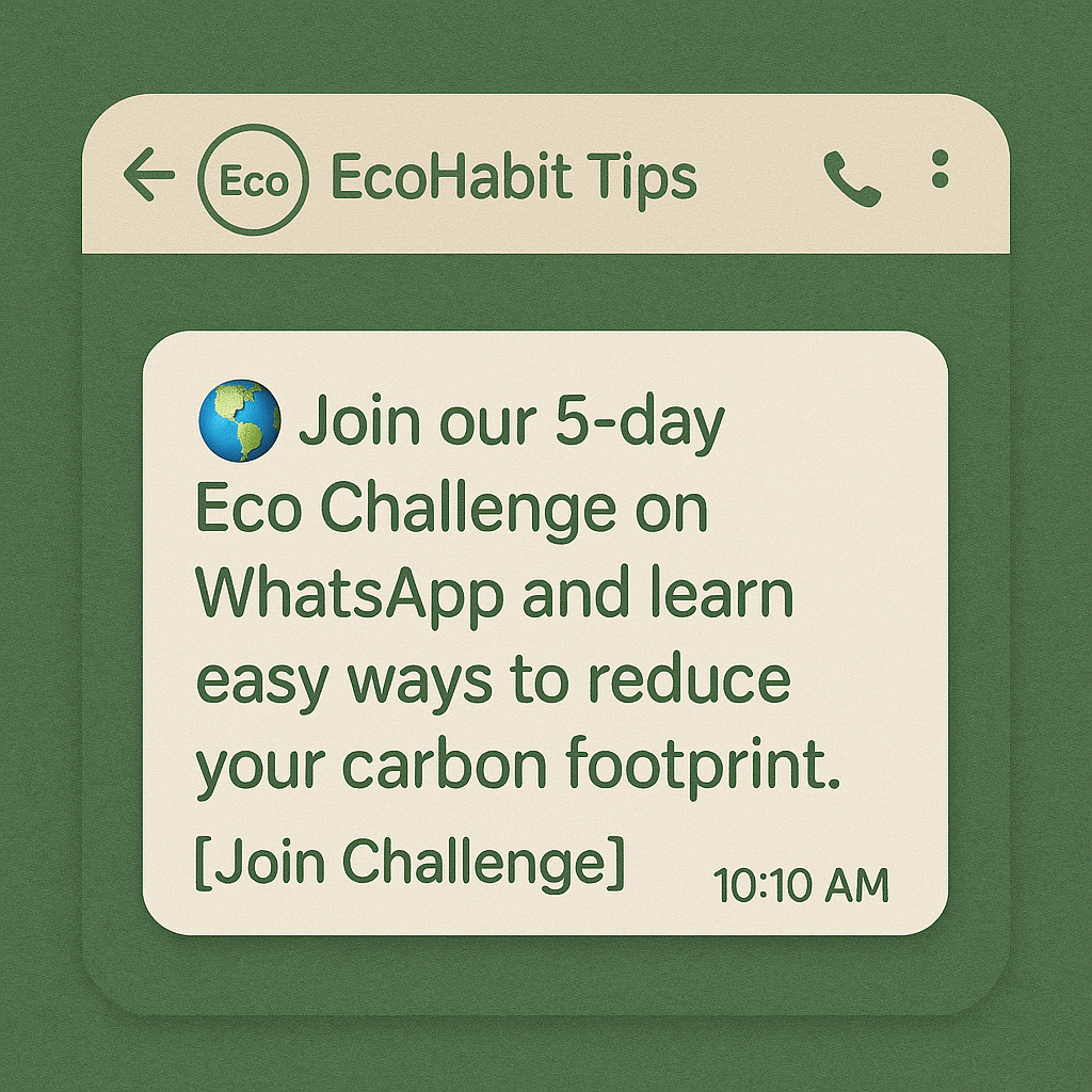 3. 📩 Message 3: 🌍 “Join our 5-day Eco Challenge on WhatsApp and learn easy ways to reduce your carbon footprint. ⬇️ [Join Challenge]”