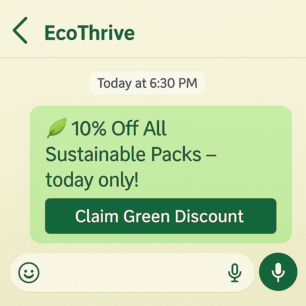 Solution: Built a 3-message WhatsApp flow (mission-driven + eco tip + urgency), which generated 2,500+ eco-pack sales within 2 days.Challenge: Balancing brand mission storytelling with direct sales messaging without losing authenticity.
