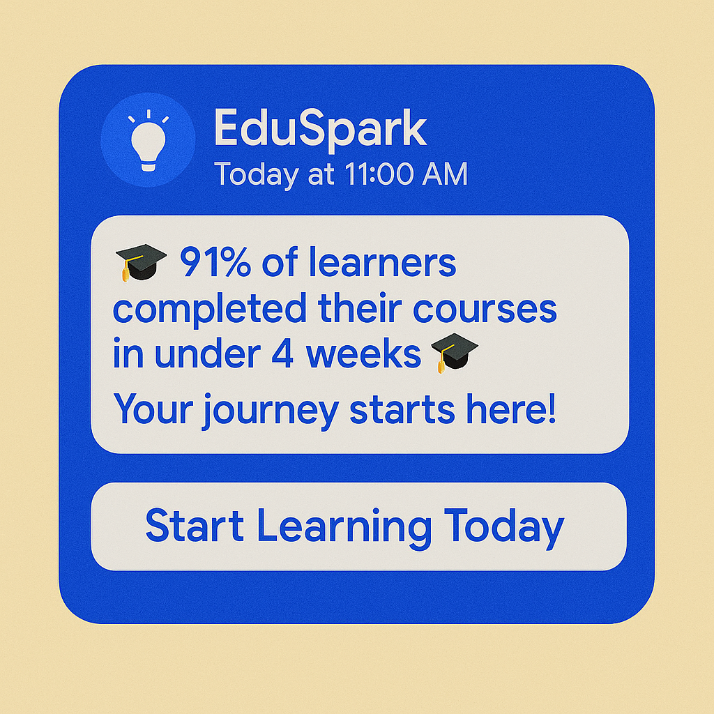 In the online education space, motivation fades fast — but urgency reignites it.That’s why WhatsApp Flash Sale Campaigns are perfect for platforms like EduSpark. They help turn curiosity into commitment through focused, time-sensitive messaging.