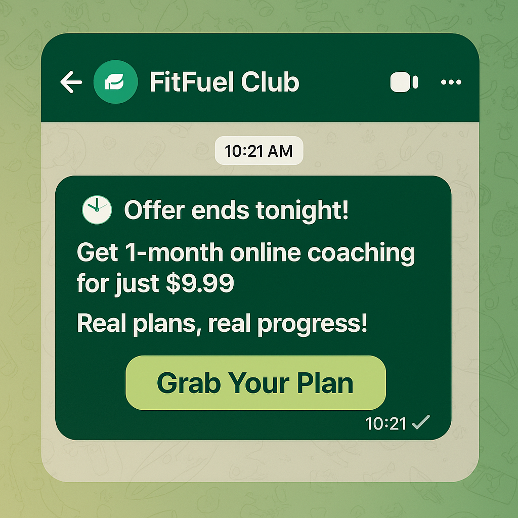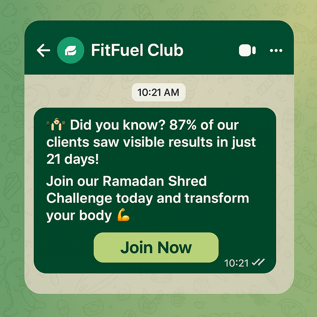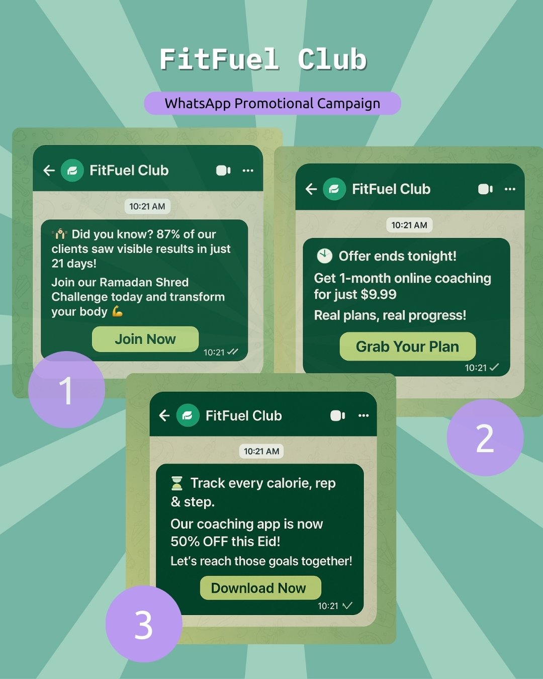 Project Showcase: FitFuel Club – WhatsApp Promotional Campaign (Ramadan & Eid Offers)