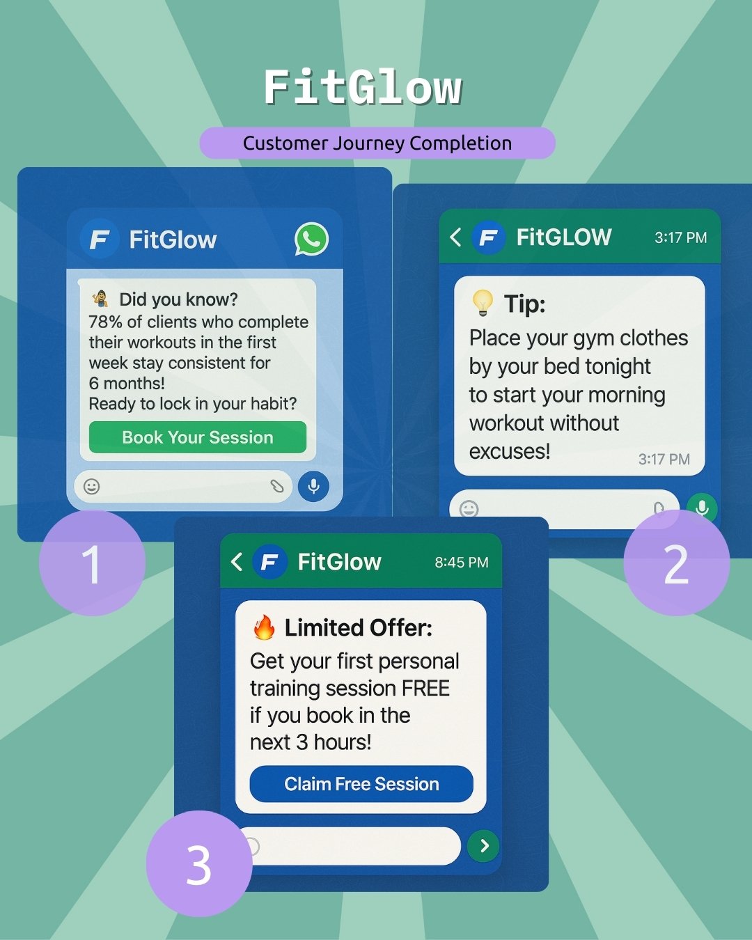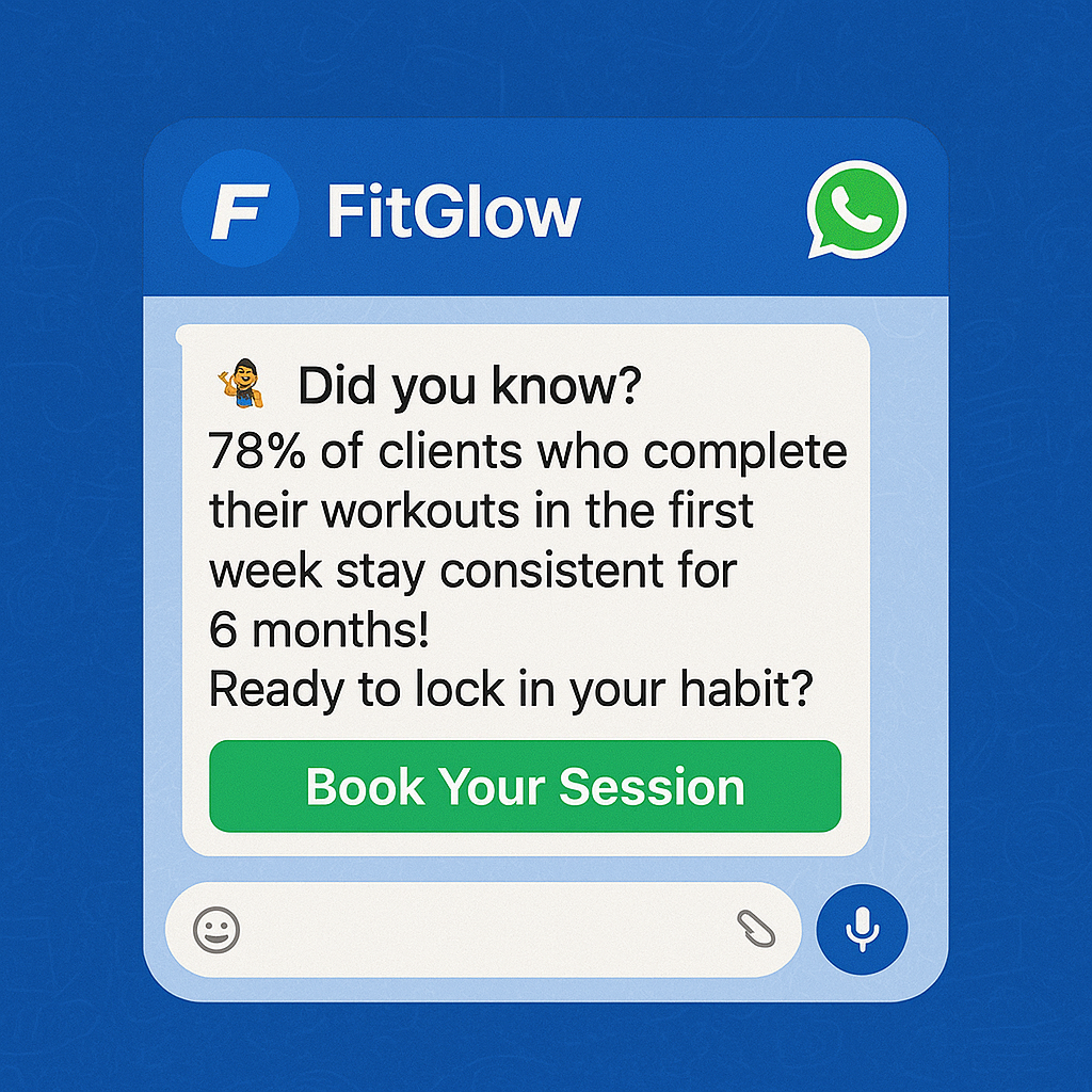 - 📩 Message 1: 🏋️♀️ Did you know? 78% of clients who complete workouts in the first week stay consistent for 6 months! Ready to lock in your habit?