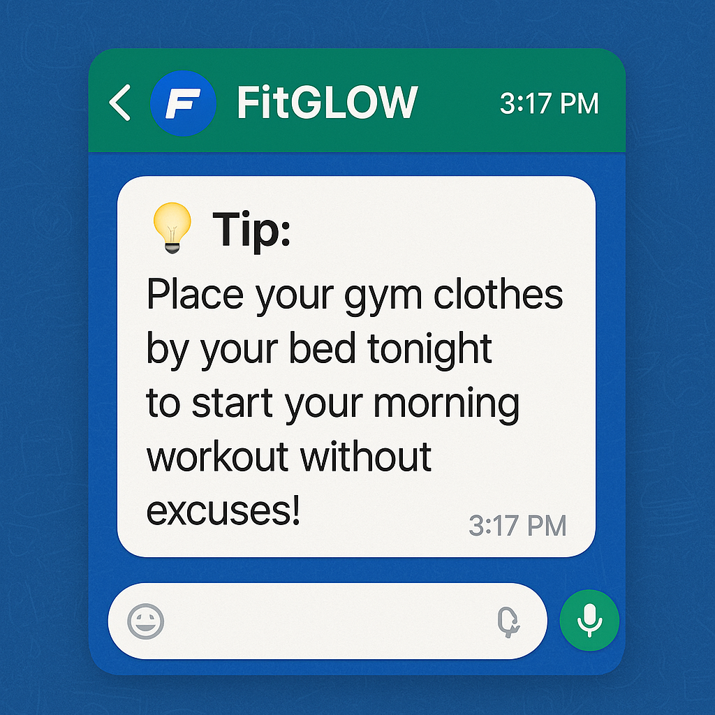 CTA: Book Your Session - 📩 Message 2: 💡 Tip: Place your gym clothes by your bed tonight to start your morning workout without excuses!