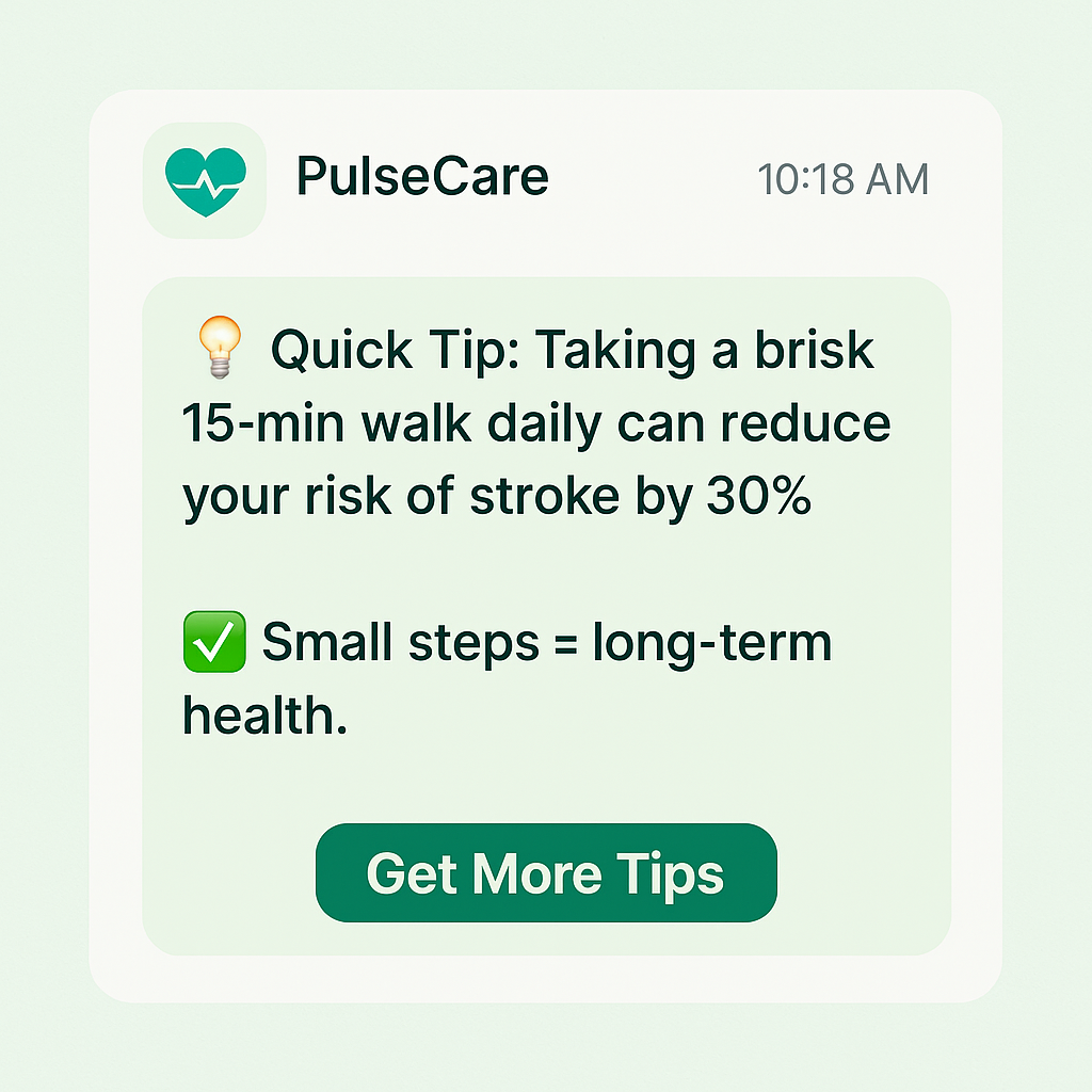 💡 Quick Tip: Taking a brisk 15-min walk daily can reduce your risk of stroke by 30%!