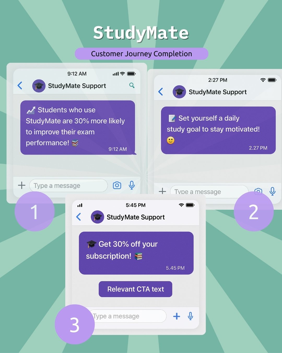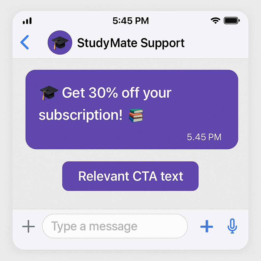 In the world of online education, engaging with students after they subscribe is a golden opportunity — not just to upsell, but to motivate and inspire better results. StudyMate leveraged our Customer Journey Completion – Upselling & Cross-Selling WhatsApp Microservice to combine learning encouragement with relevant upgrade offers, creating a win-win for both students and the brand.