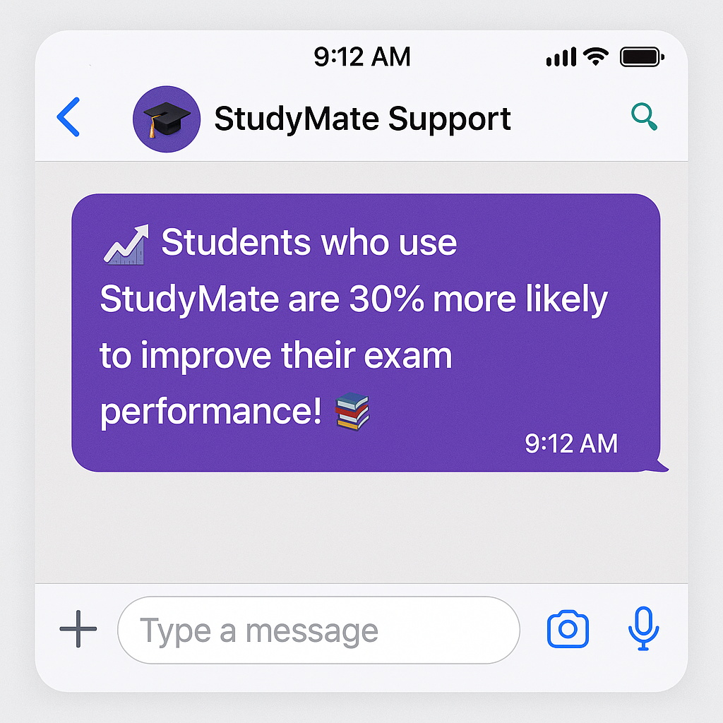 Students who use StudyMate are 30% more likely to improve their exam performance!