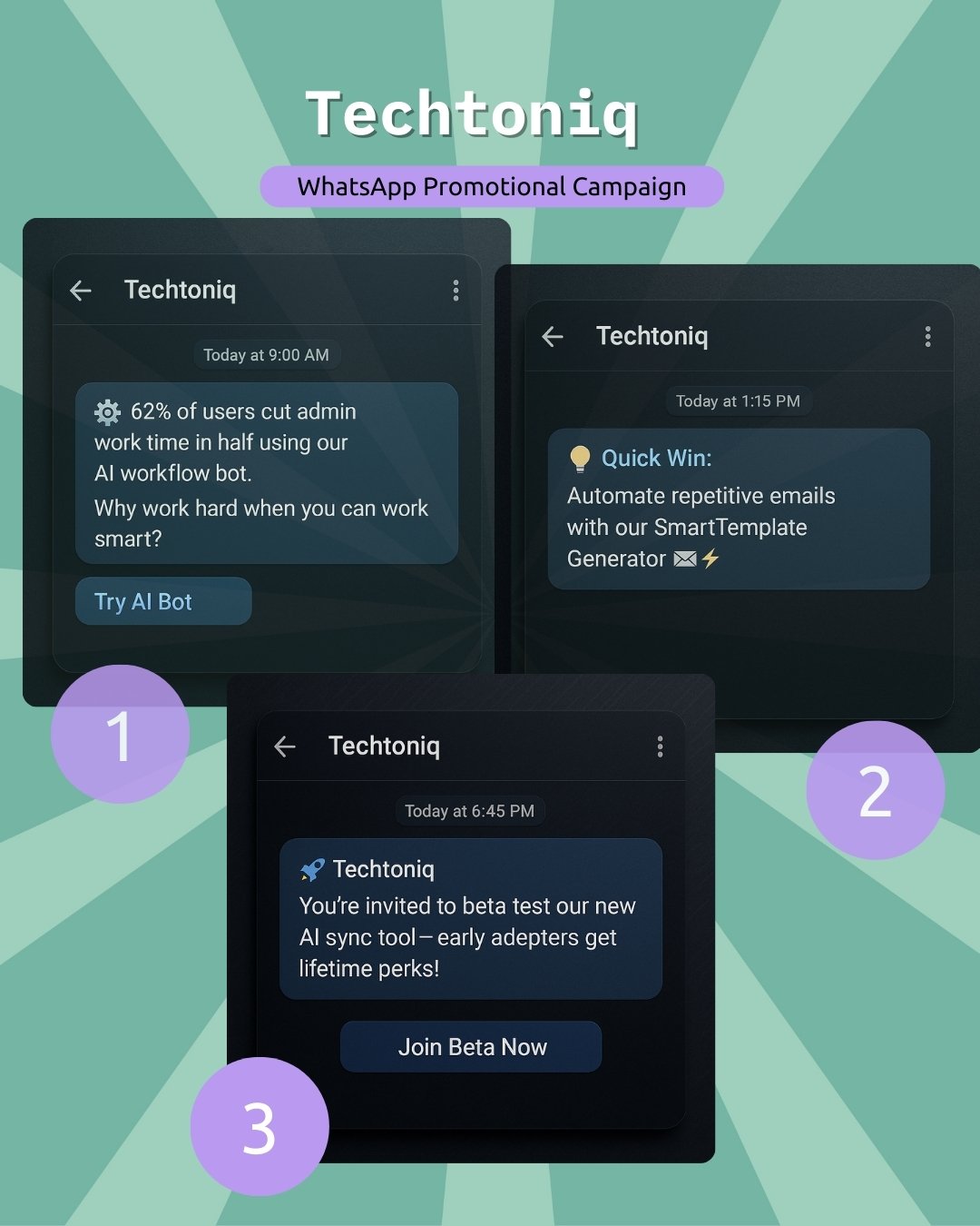 🎯 Campaign Structure: Techtoniq’s 3-Step WhatsApp Launch